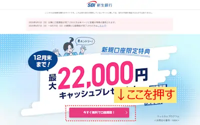 新規口座開設のお客さま限定!ウェルカムプログラム | SBI新生銀行