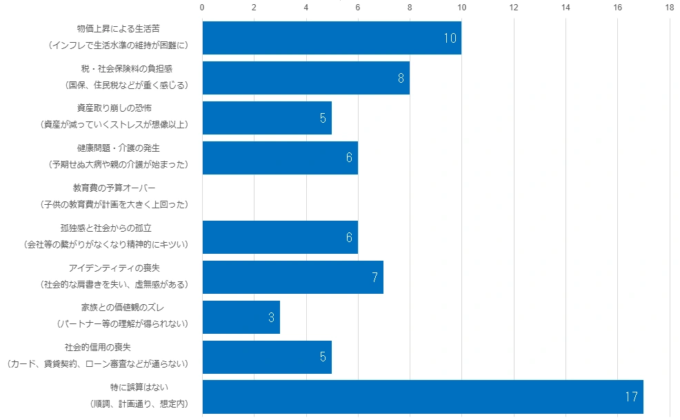 「FIRE達成後(または目指す過程で)、想定外だった『誤算』は何ですか?(複数選択可)」